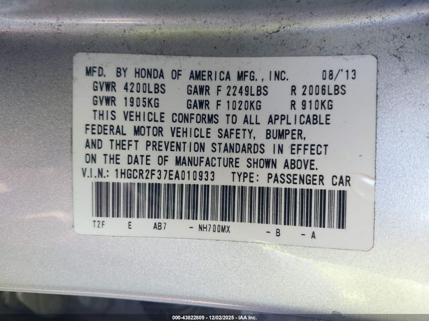 Колір СрібнийЦиліндри 4Привід Передній привідVIN 1HGCR2F37EA010933Стан СтаціонарноУшкодження Звичайний зносДата аукціону 2025-12-10 AutoRIA