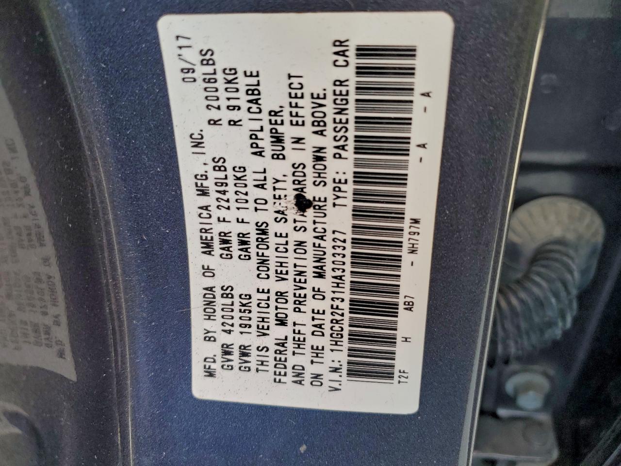 2017 HONDA ACCORD 2017 року Бензин, 2.4, , vin - 1HGCR2F31HA303327 з США