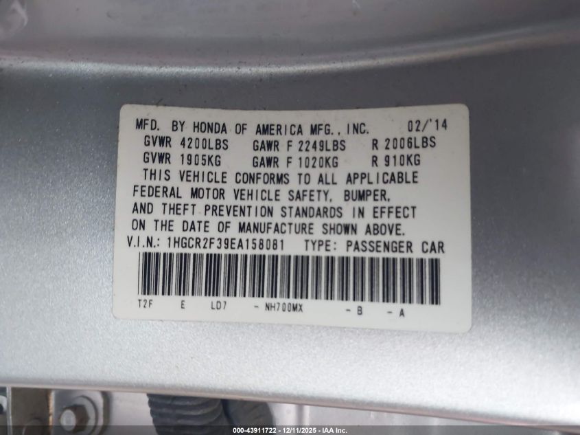 Колір СрібнийЦиліндри 4Привід Передній привідVIN 1HGCR2F39EA158081Стан НевідомоУшкодження Невідомо AutoRIA