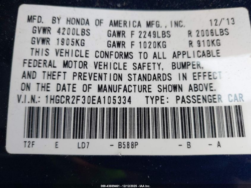Колір СинійЦиліндри 4Привід Передній привідVIN 1HGCR2F30EA105334Стан ЗаводитьсяУшкодження Передня або задня AutoRIA