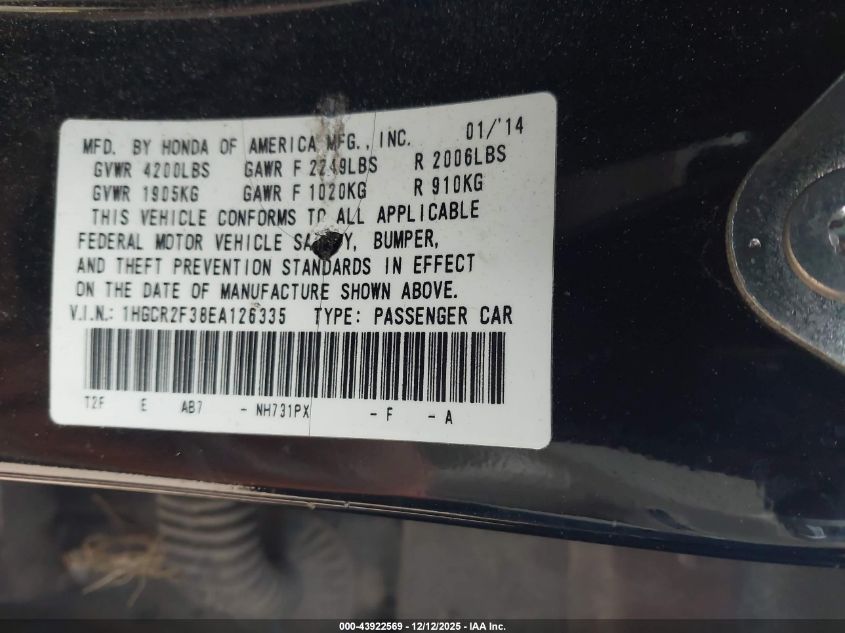 2014 HONDA ACCORD 2014 року Бензин, 2.4, Передній привід, vin - 1HGCR2F38EA126335 з США