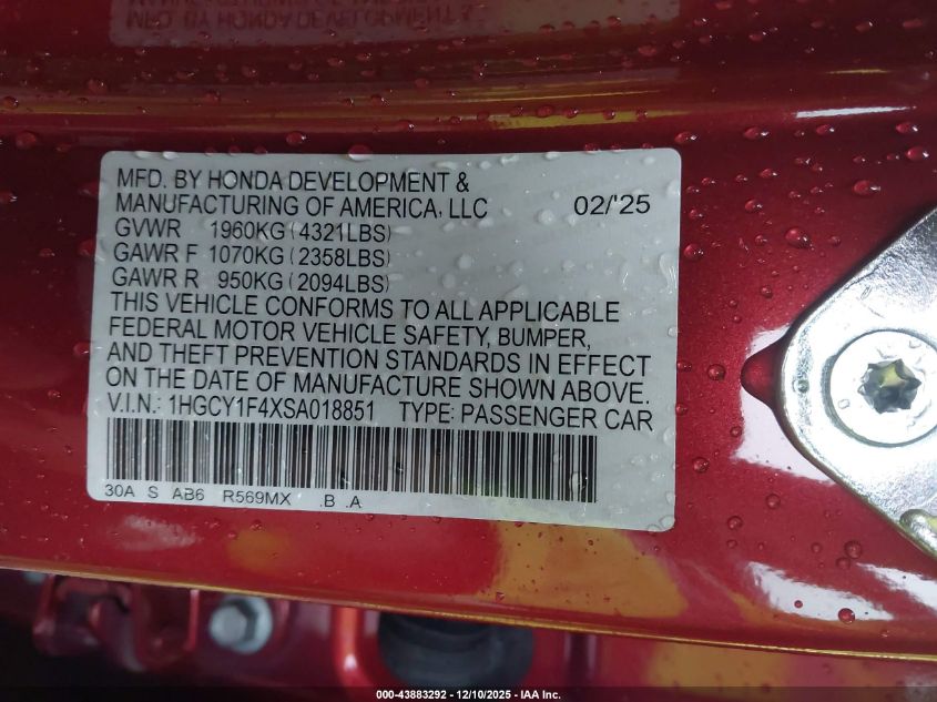 2025 HONDA ACCORD 2025 року Бензин, 1.5, Передній привід, vin - 1HGCY1F4XSA018851 з США