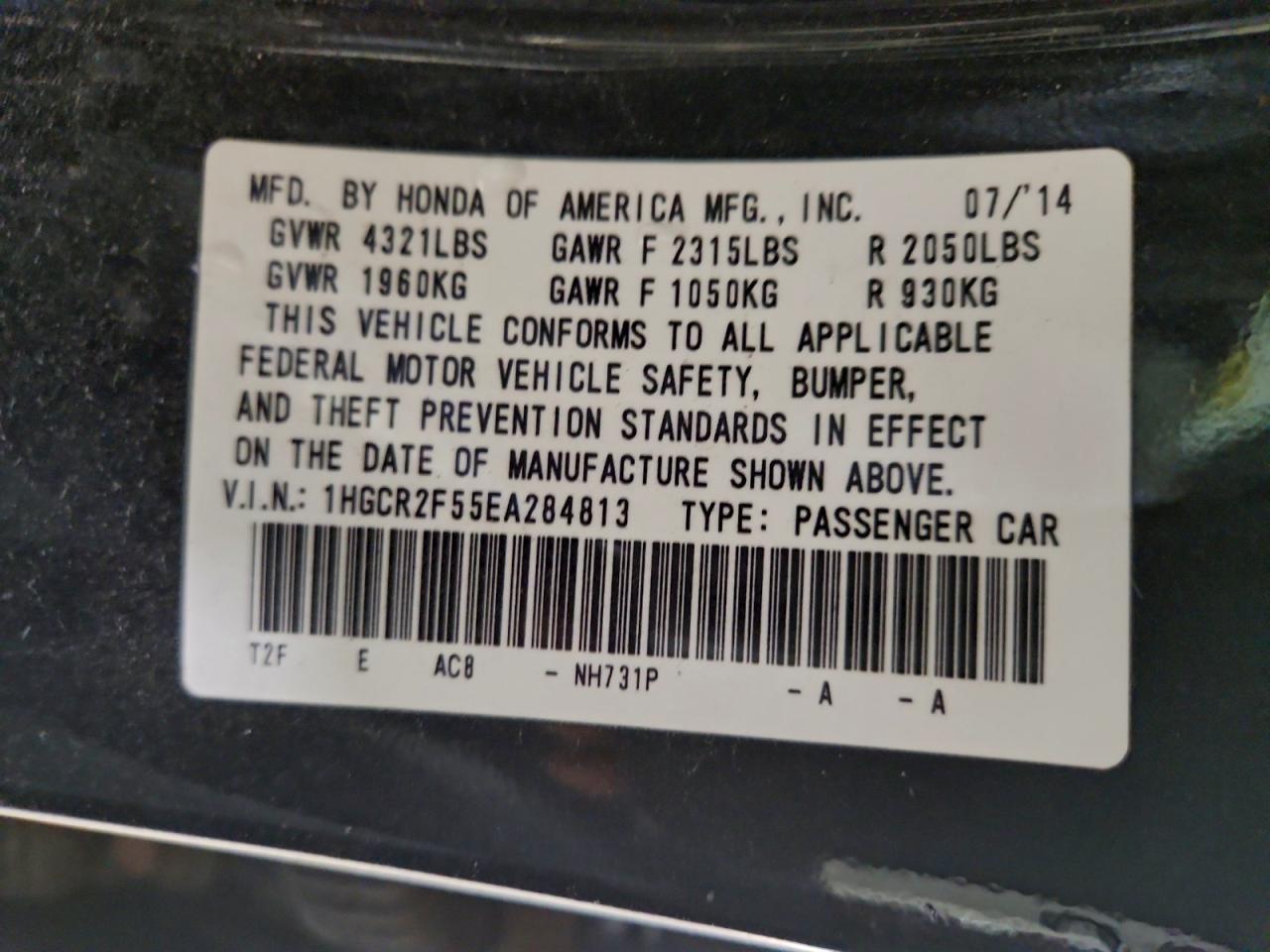 2014 HONDA ACCORD 2014 року Бензин, 2.4, , vin - 1HGCR2F55EA284813 з США