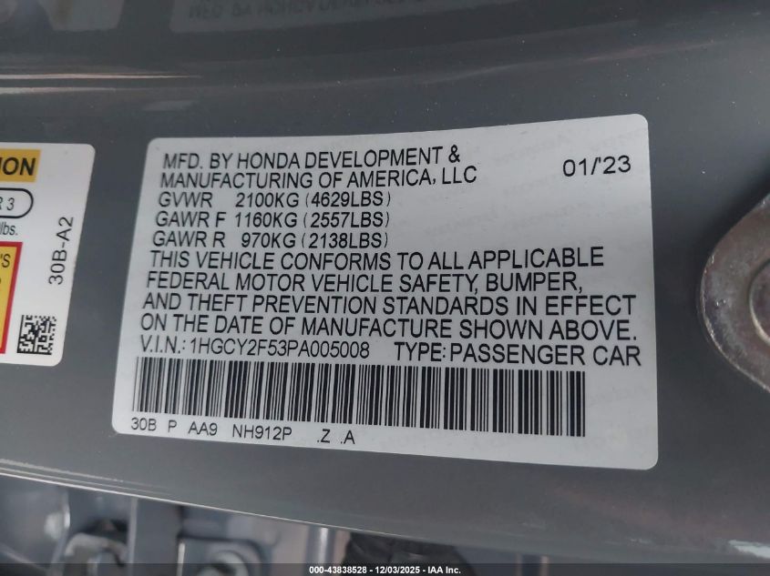 2023 HONDA ACCORD 2023 року Гібрид, 2.0, Передній привід, vin - 1HGCY2F53PA005008 з США