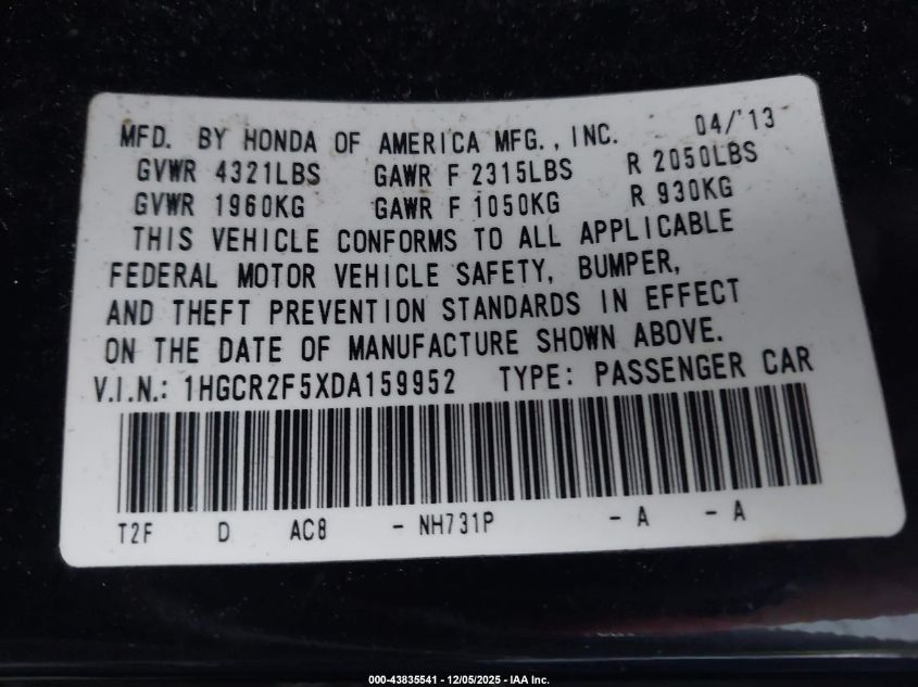 2013 HONDA ACCORD 2013 року Бензин, 2.4, Передній привід, vin - 1HGCR2F5XDA159952 з США