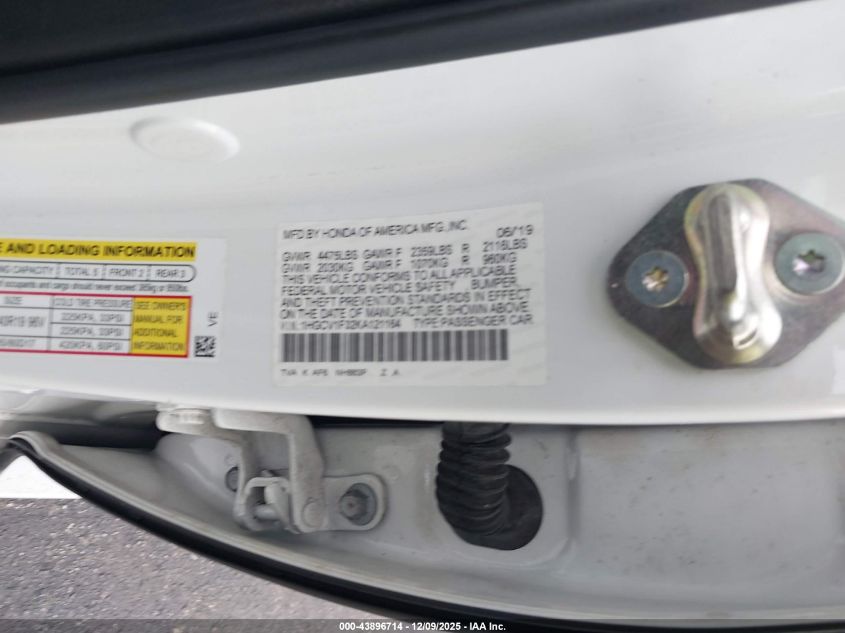 2019 HONDA ACCORD 2019 року Бензин, 1.5, Передній привід, vin - 1HGCV1F32KA121164 з США