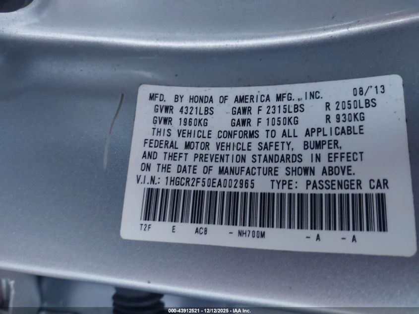 2014 HONDA ACCORD 2014 року Бензин, 2.4, Передній привід, vin - 1HGCR2F50EA002965 з США
