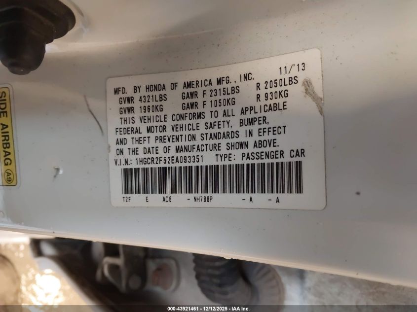 2014 HONDA ACCORD 2014 року Бензин, 2.4, Передній привід, vin - 1HGCR2F52EA093351 з США