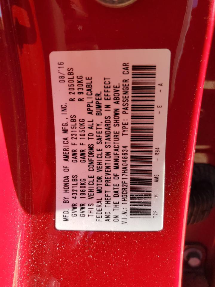 Колір ЧервонийЦиліндри 4VIN 1HGCR2F17HA048634Стан НевідомоУшкодження Передня або задня AutoRIA