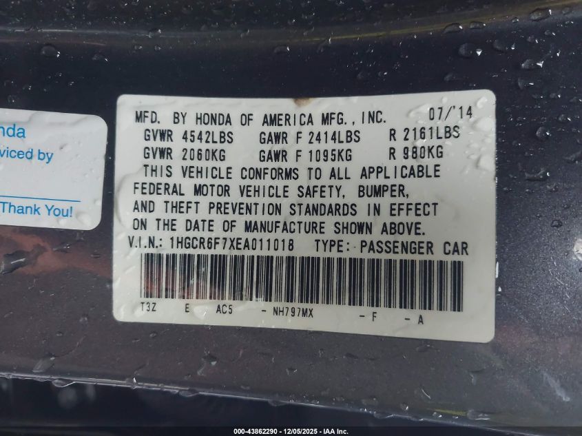 Колір СірийЦиліндри 4Привід Передній привідVIN 1HGCR6F7XEA011018Стан СтаціонарноУшкодження Ліва сторона AutoRIA