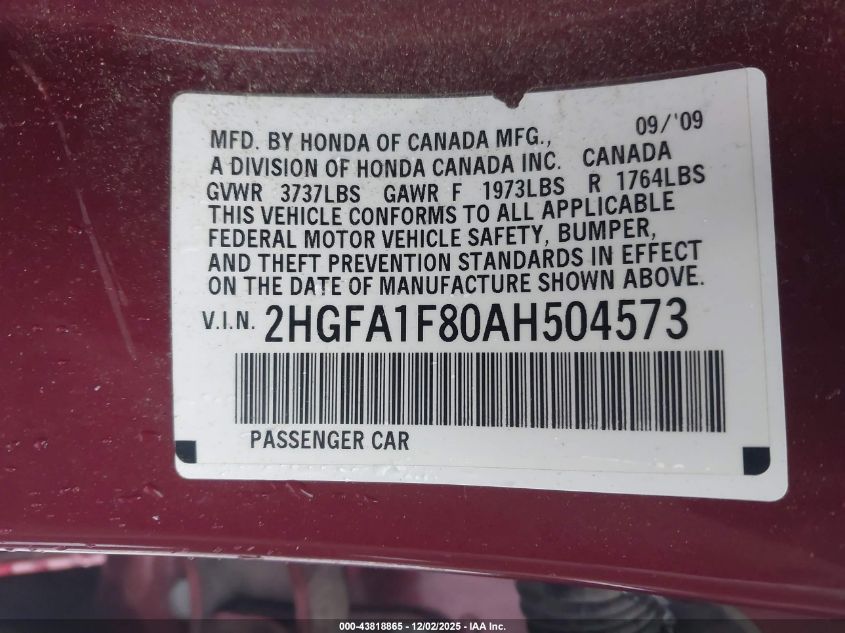 2010 HONDA CIVIC VP