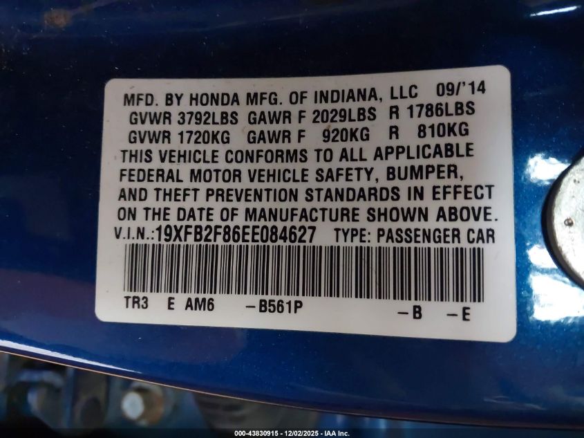 Колір СинійЦиліндри 4Привід Передній привідVIN 19XFB2F86EE084627Стан СтаціонарноУшкодження Передня або задня AutoRIA