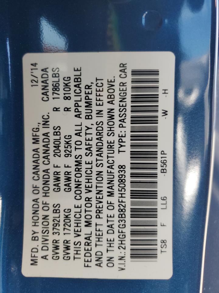 2015 HONDA CIVIC 2015 року Бензин, 1.8, , vin - 2HGFG3B82FH508938 з США