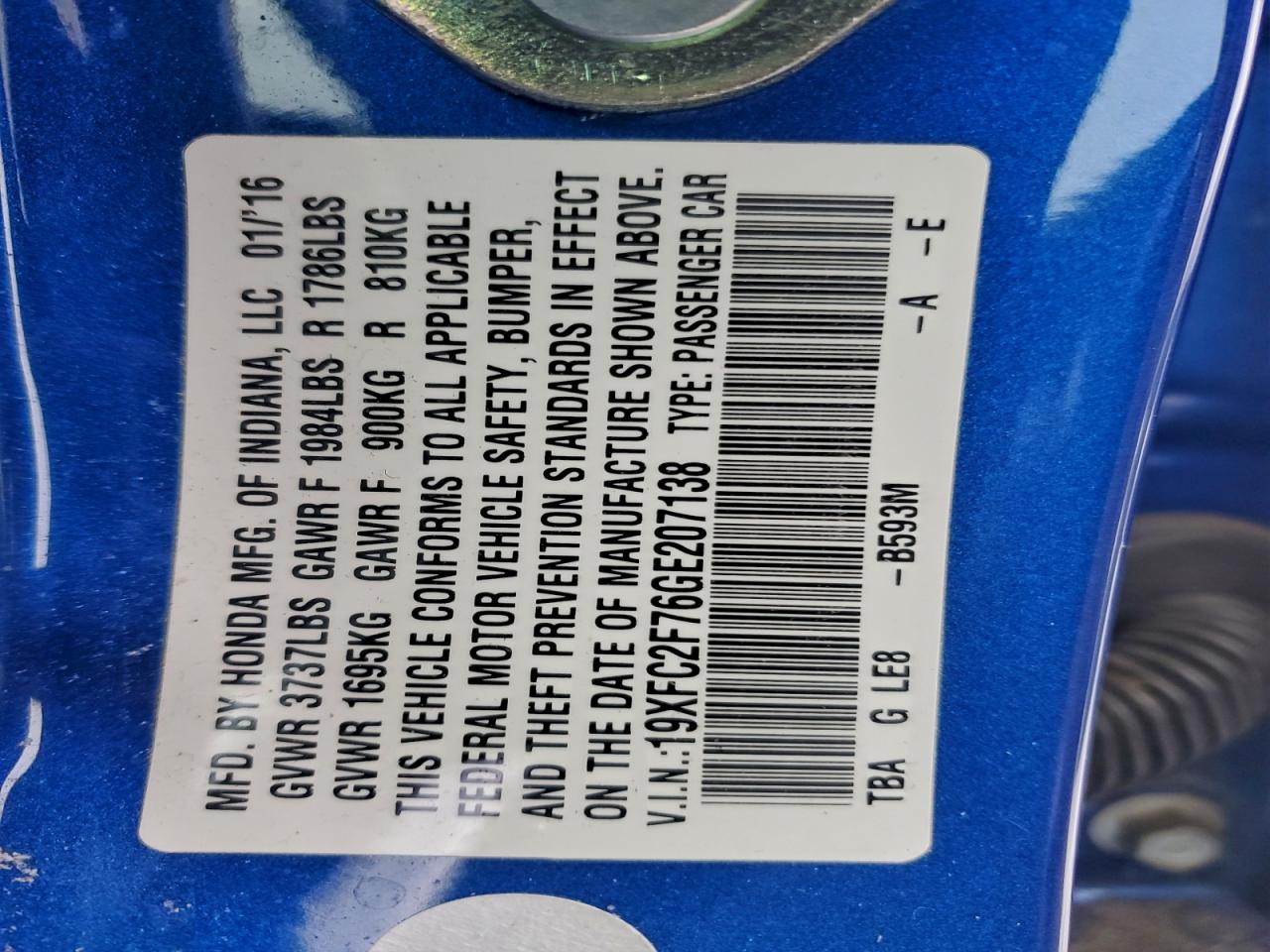 2016 HONDA CIVIC 2016 року Бензин, 2.0, , vin - 19XFC2F76GE207138 з США