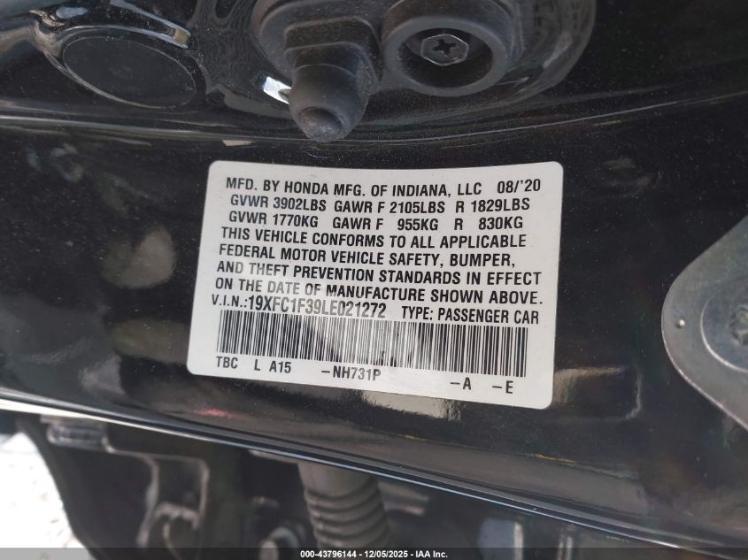 2020 HONDA CIVIC 2020 року Бензин, 1.5, Передній привід, vin - 19XFC1F39LE021272 з США