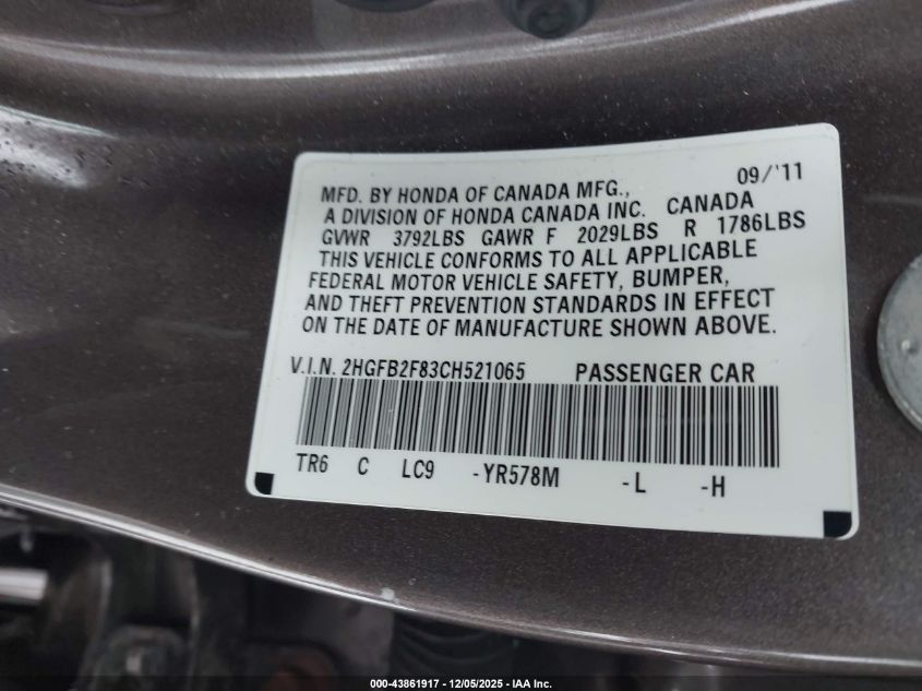 2012 HONDA CIVIC 2012 року Бензин, 1.8, Передній привід, vin - 2HGFB2F83CH521065 з США