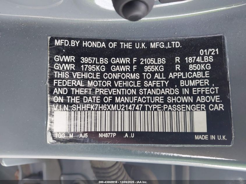 2021 HONDA CIVIC EX