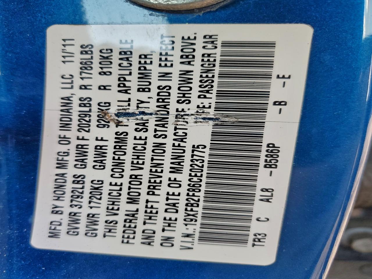 Колір СинійЦиліндри 4VIN 19XFB2F86CE023775Стан НевідомоУшкодження Задня AutoRIA