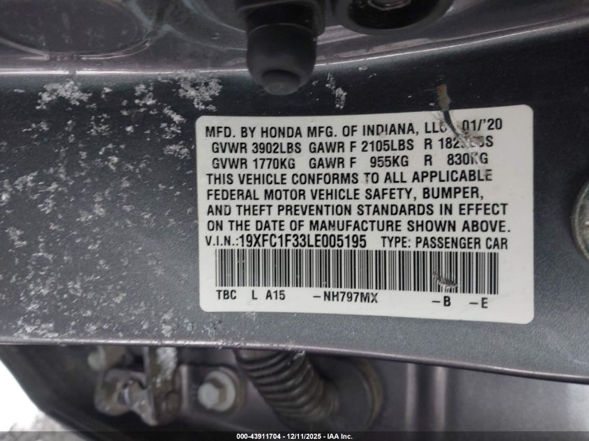 2020 HONDA CIVIC 2020 року Бензин, 1.5, Передній привід, vin - 19XFC1F33LE005195 з США