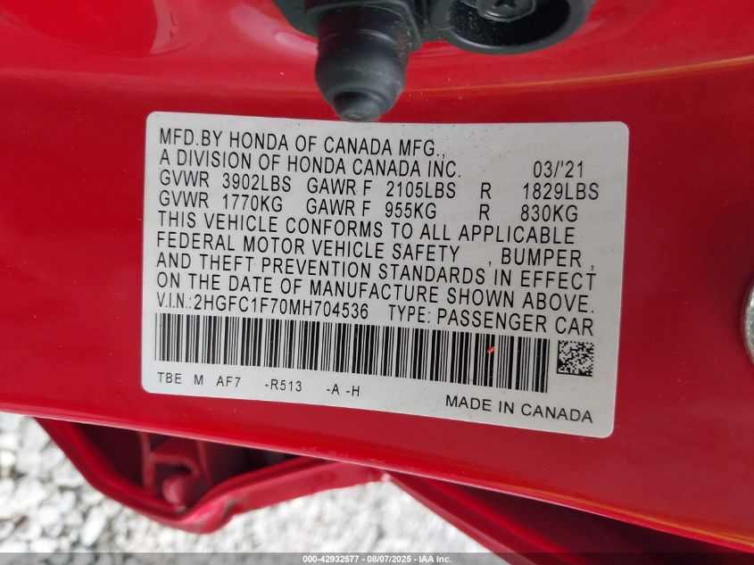2021 HONDA CIVIC SPORT