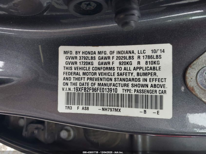 2015 HONDA CIVIC 2015 року Бензин, 1.8, Передній привід, vin - 19XFB2F96FE013910 з США