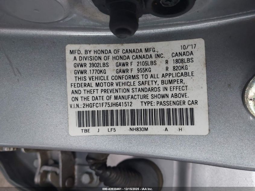 2018 HONDA CIVIC 2018 року Бензин, 1.5, Передній привід, vin - 2HGFC1F75JH641512 з США
