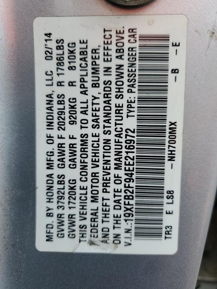 2014 HONDA CIVIC 2014 року Бензин, 1.8, , vin - 19XFB2F94EE216972 з США