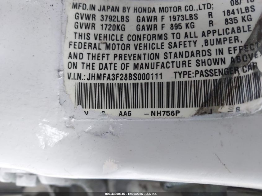 Колір БілийЦиліндри 4Привід Передній привідVIN JHMFA3F28BS000111Стан Заводиться та їде (перевірено)Ушкодження Права сторона AutoRIA