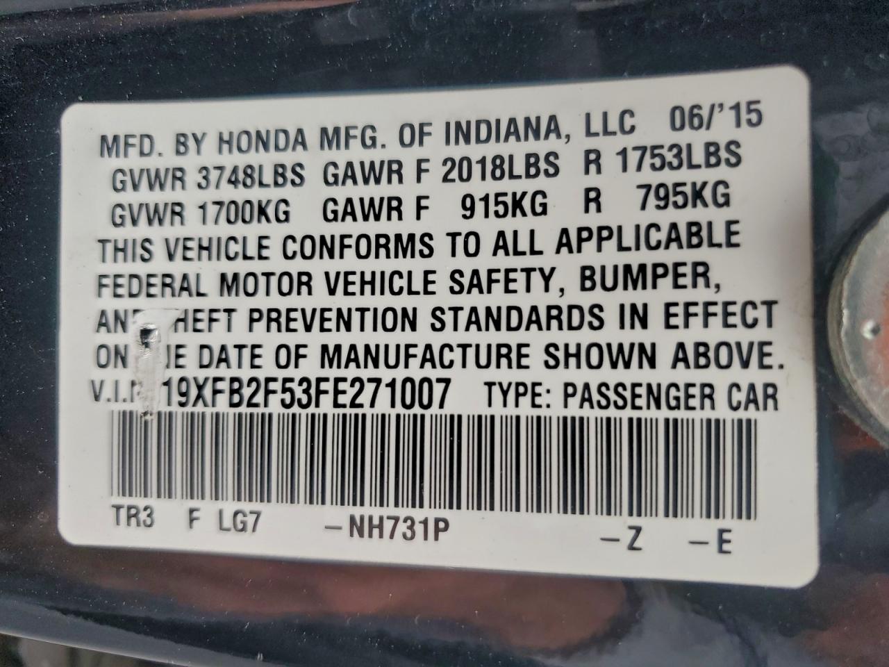 2015 HONDA CIVIC 2015 року Бензин, 1.8, , vin - 19XFB2F53FE271007 з США
