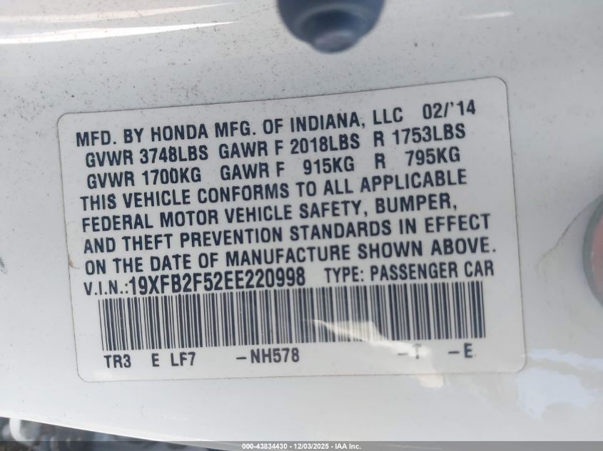 2014 HONDA CIVIC 2014 року Бензин, 1.8, Передній привід, vin - 19XFB2F52EE220998 з США