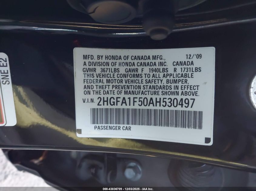 2010 HONDA CIVIC 2010 року Бензин, 1.8, Передній привід, vin - 2HGFA1F50AH530497 з США