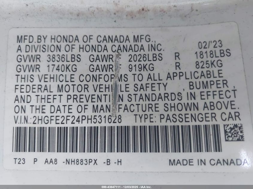 2023 HONDA CIVIC LX