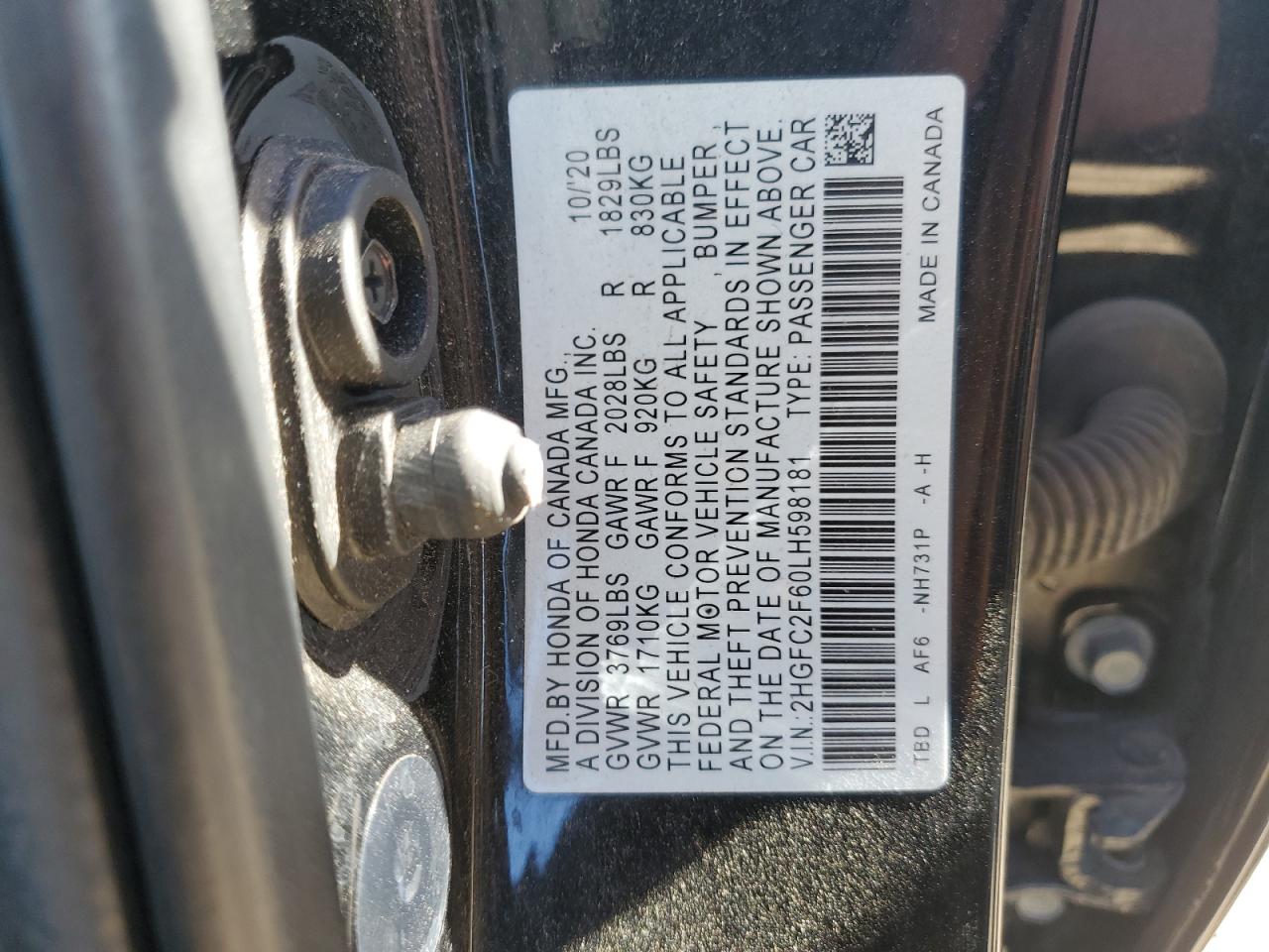 Колір ЧорнийЦиліндри 4VIN 2HGFC2F60LH598181Стан ЗаводитьсяУшкодження Передня або задня AutoRIA