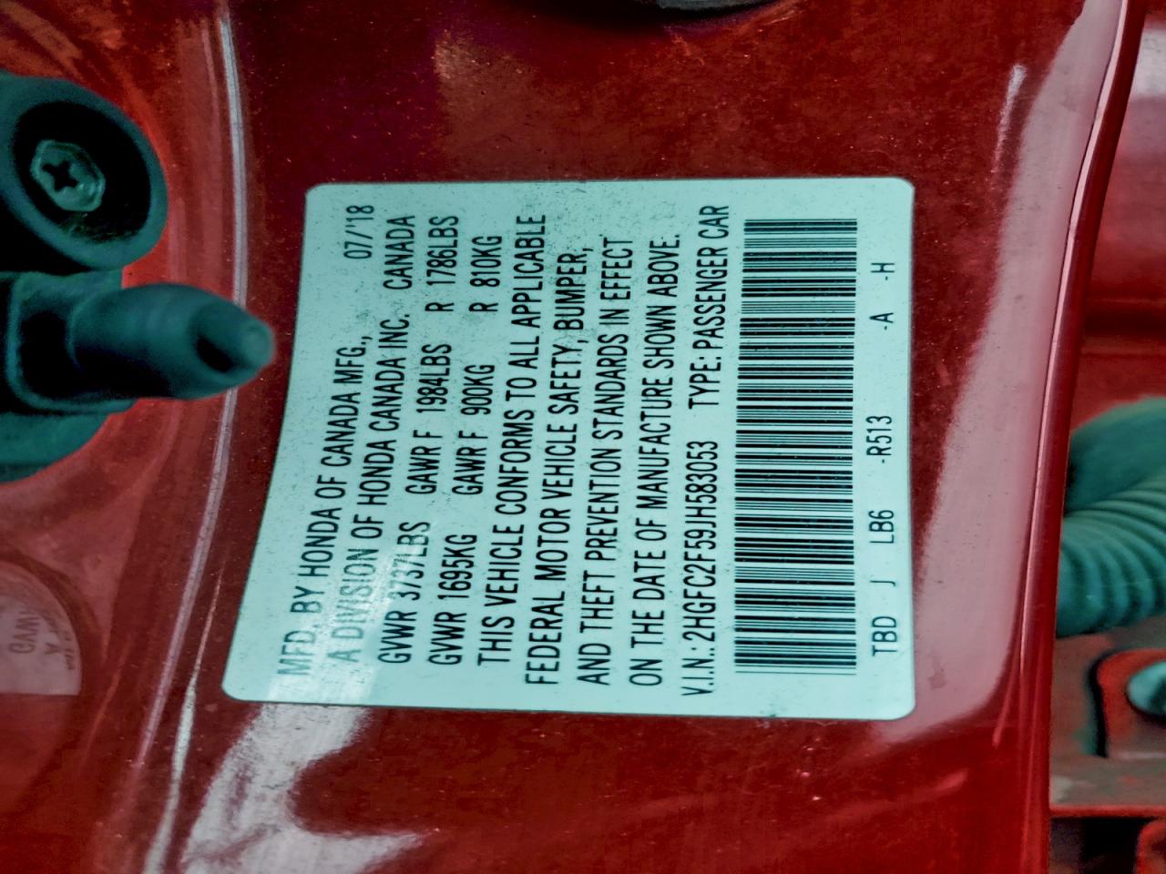2018 HONDA CIVIC 2018 року Бензин, 2.0, , vin - 2HGFC2F59JH583053 з США