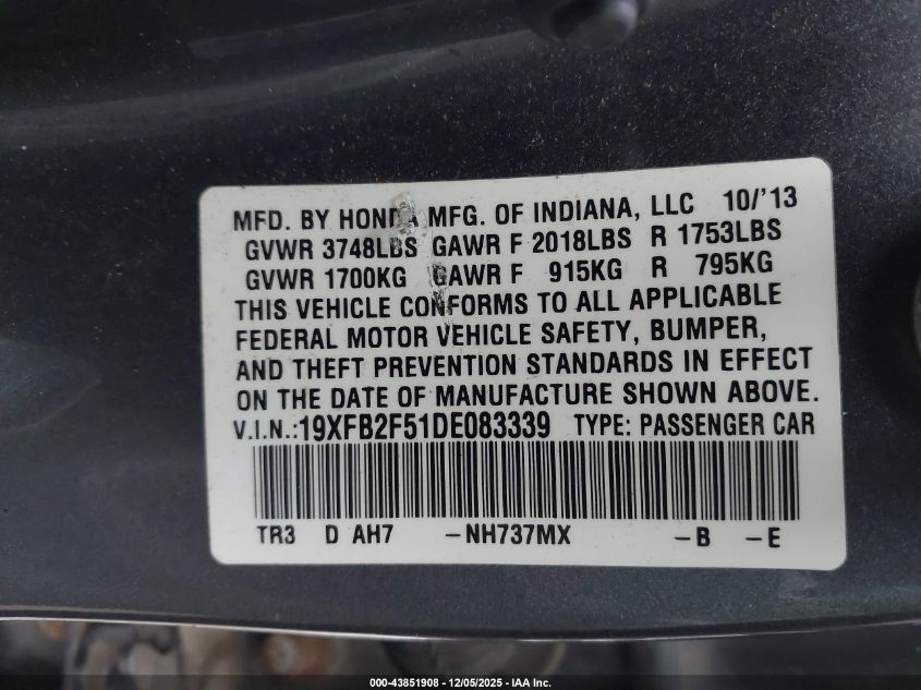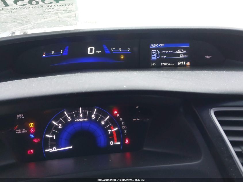 2013 HONDA CIVIC 2013 року Бензин, 1.8, Передній привід, vin - 19XFB2F51DE083339 з США