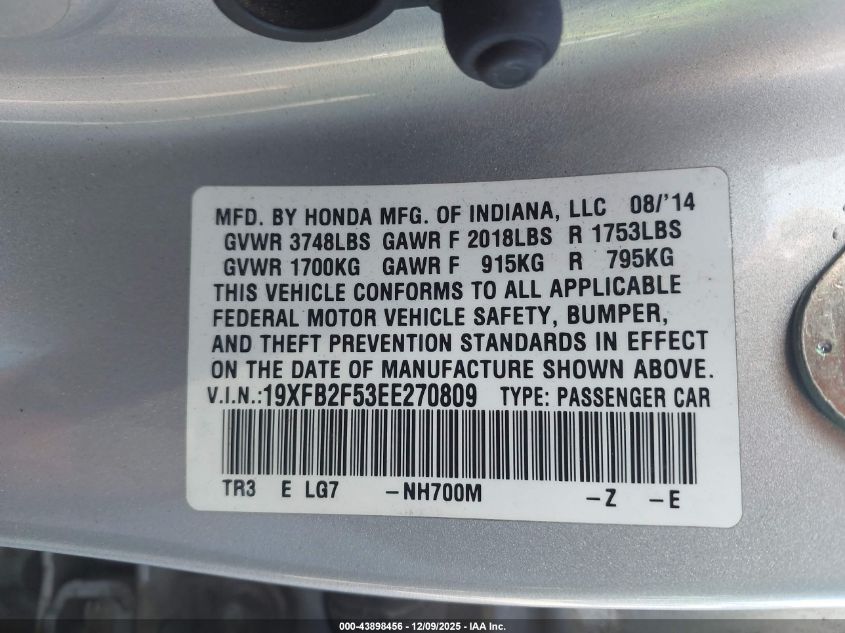 Колір СрібнийЦиліндри 4Привід Передній привідVIN 19XFB2F53EE270809Стан Заводиться та їде (перевірено)Ушкодження Передня або задня AutoRIA