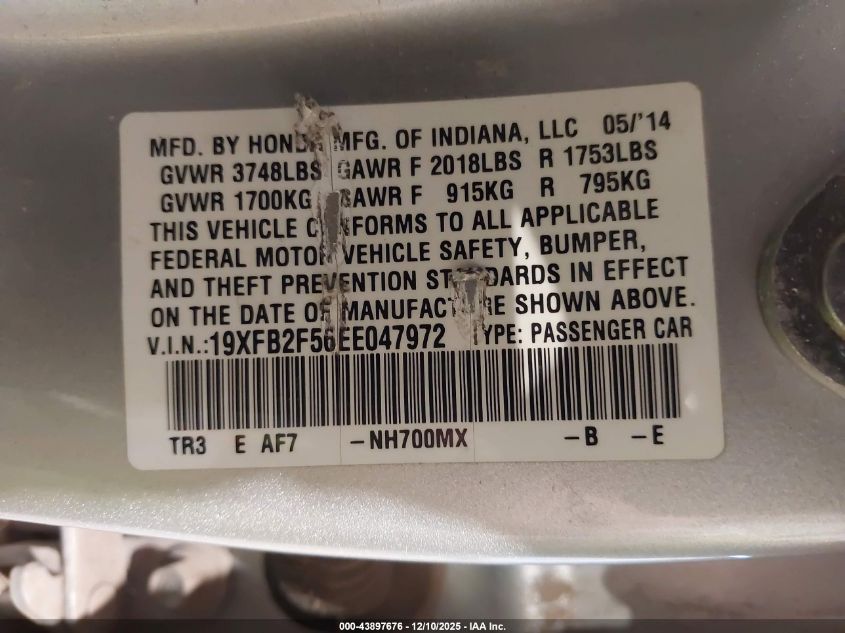 2014 HONDA CIVIC 2014 року Бензин, 1.8, Передній привід, vin - 19XFB2F56EE047972 з США