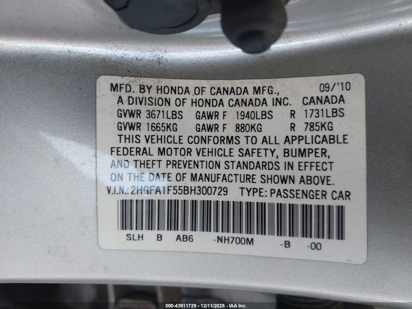 2011 HONDA CIVIC LX