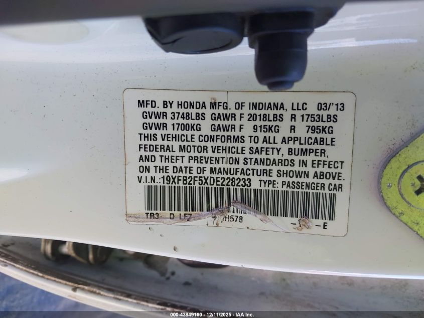 Колір БілийЦиліндри 4Привід Передній привідVIN 19XFB2F5XDE228233Стан Заводиться та їде (перевірено)Ушкодження Передня або задня AutoRIA