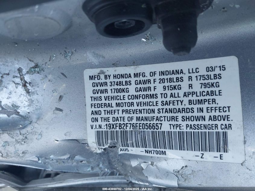 2015 HONDA CIVIC 2015 року Бензин, 1.8, Передній привід, vin - 19XFB2F76FE056657 з США