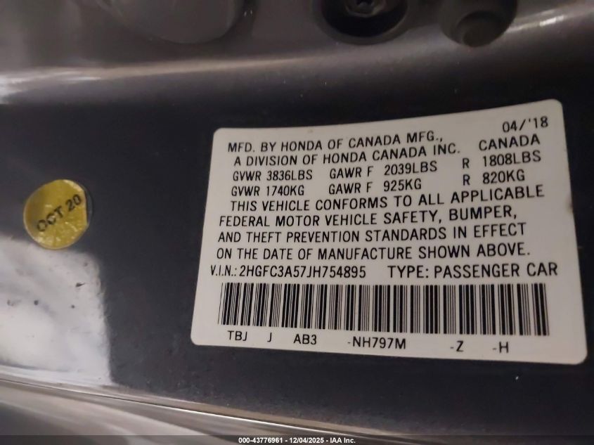 Колір СірийЦиліндри 4Привід Передній привідVIN 2HGFC3A57JH754895Стан СтаціонарноУшкодження Вандалізм AutoRIA