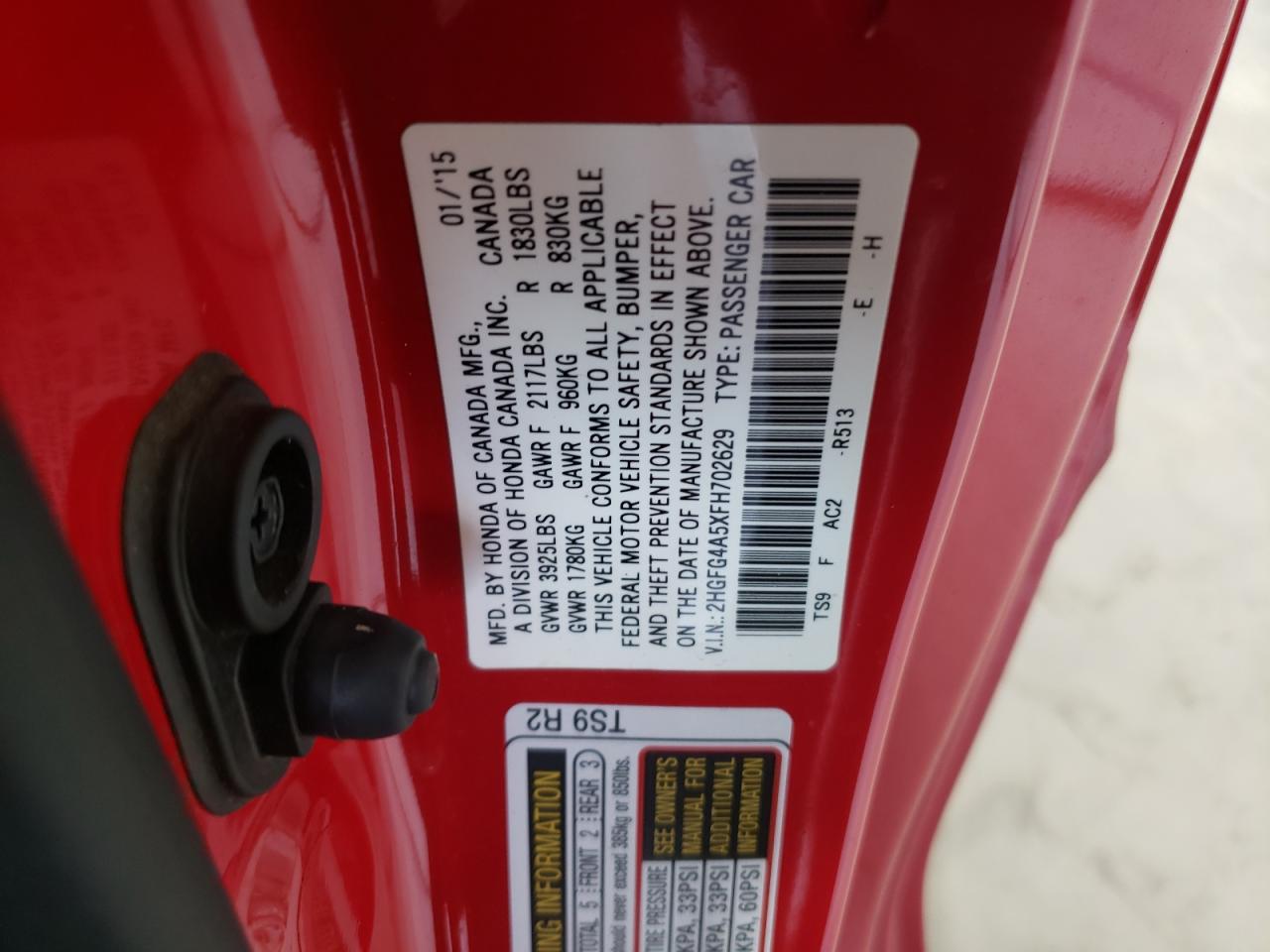 Колір ЧервонийЦиліндри 4VIN 2HGFG4A5XFH702629Стан Заводиться та їде (перевірено)Ушкодження Передня або задня AutoRIA