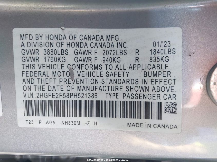 2023 HONDA CIVIC LX