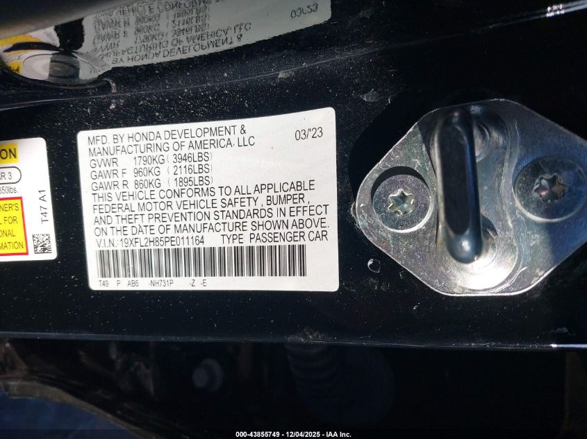 2023 HONDA CIVIC 2023 року Бензин, 2.0, Передній привід, vin - 19XFL2H85PE011164 з США