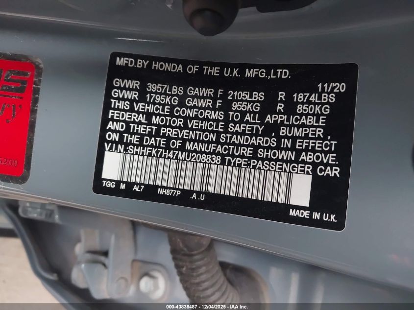 2021 HONDA CIVIC SPORT