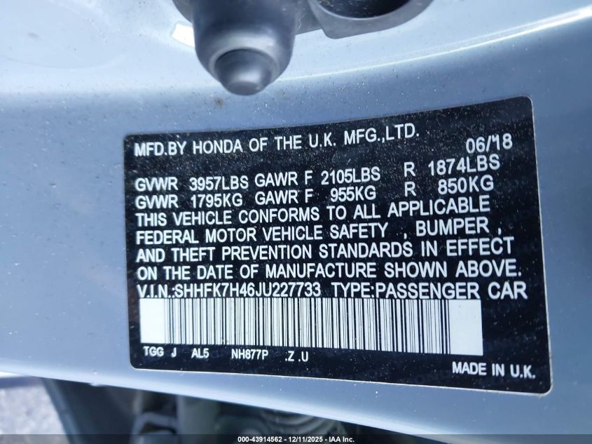 2018 HONDA CIVIC 2018 року Бензин, 1.5, Передній привід, vin - SHHFK7H46JU227733 з США