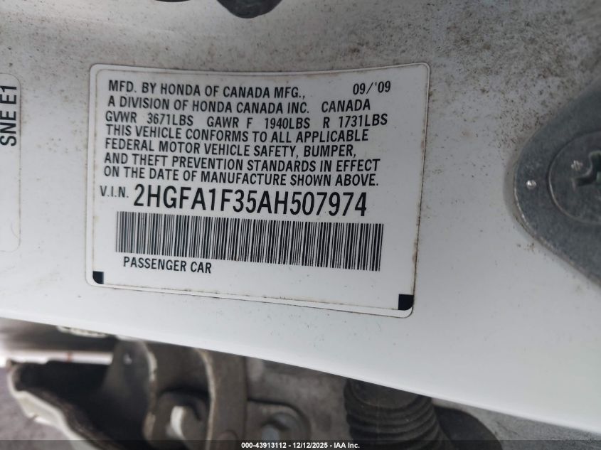 2010 HONDA CIVIC 2010 року Бензин, 1.8, Передній привід, vin - 2HGFA1F35AH507974 з США