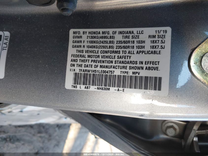 2020 HONDA CR-V 2020 року Бензин, 1.5, Передній привід, vin - 7FARW1H51LE004757 з США