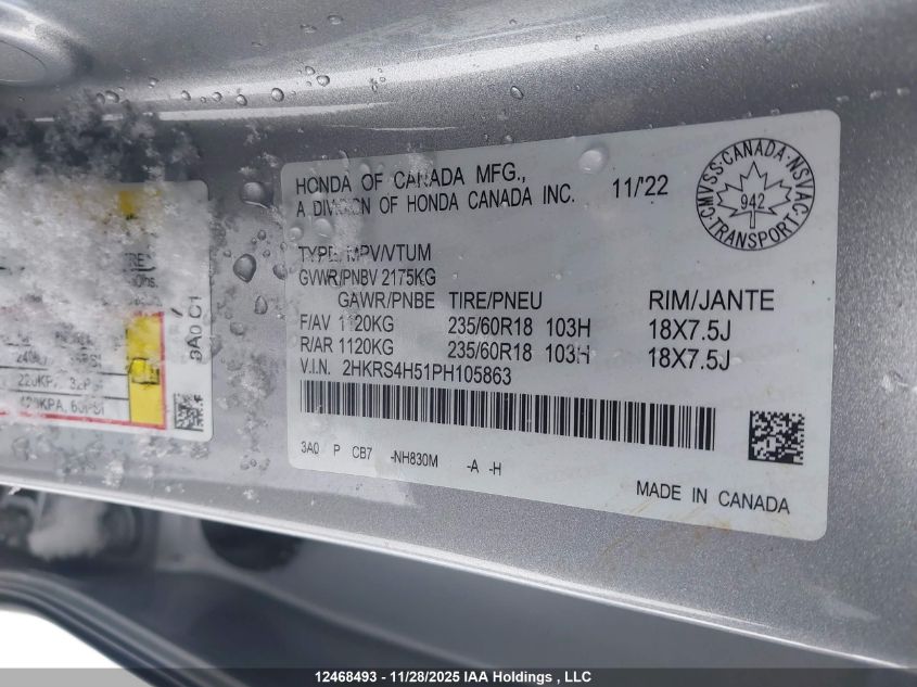 Колір СрібнийЦиліндри 4Привід Передній привідVIN 2HKRS4H51PH105863Стан СтаціонарноУшкодження Ліва сторонаДата аукціону 2025-12-09 AutoRIA
