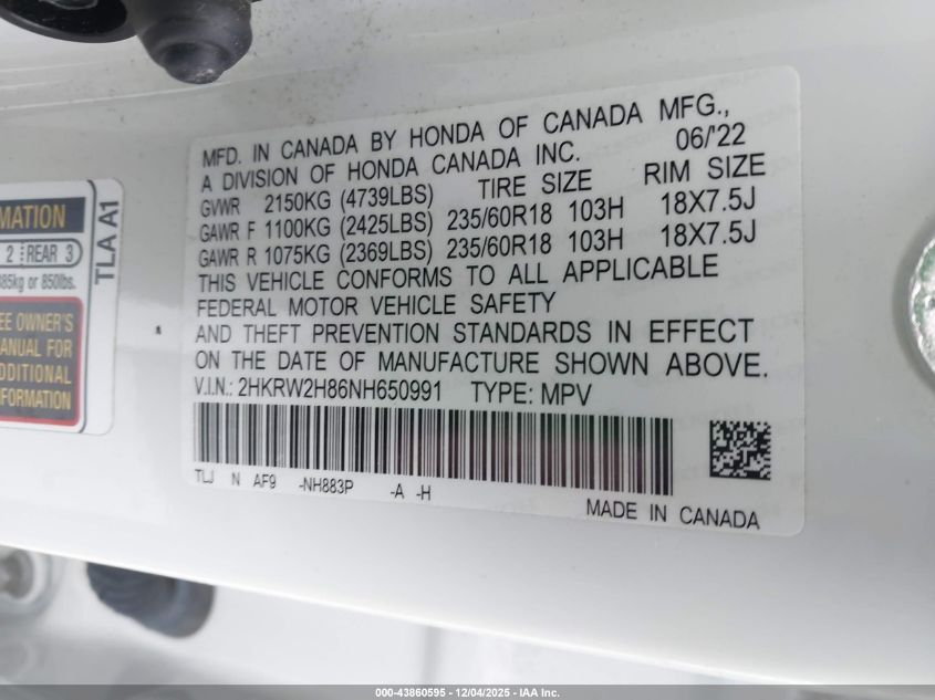 2022 HONDA CR-V 2022 року Бензин, 1.5, Повний привід, vin - 2HKRW2H86NH650991 з США